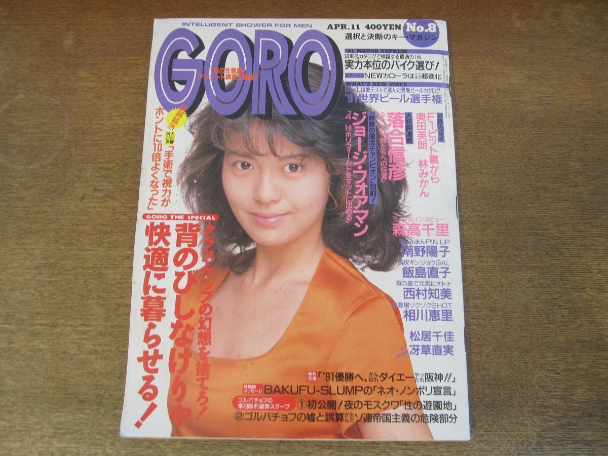- 2408mn●GORO ゴロー 8/1991平成3.4.11●表紙:南野陽子/飯島直子カラーグラビア7p/西村知美カラー5p/森高千里4p/安原麗子インタビュー