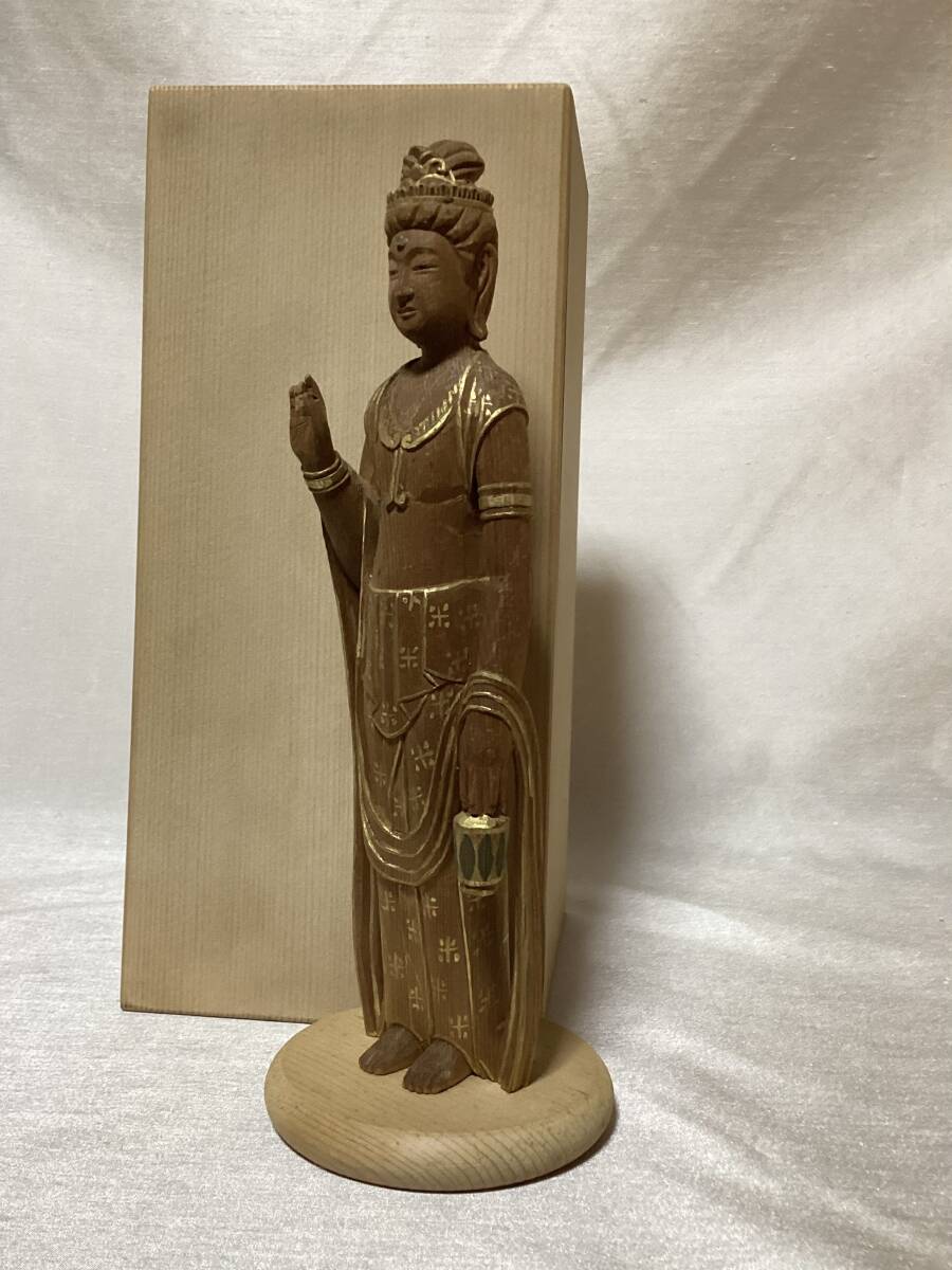 - 初だし 木彫り観音立像 金彩 高さ228㎜