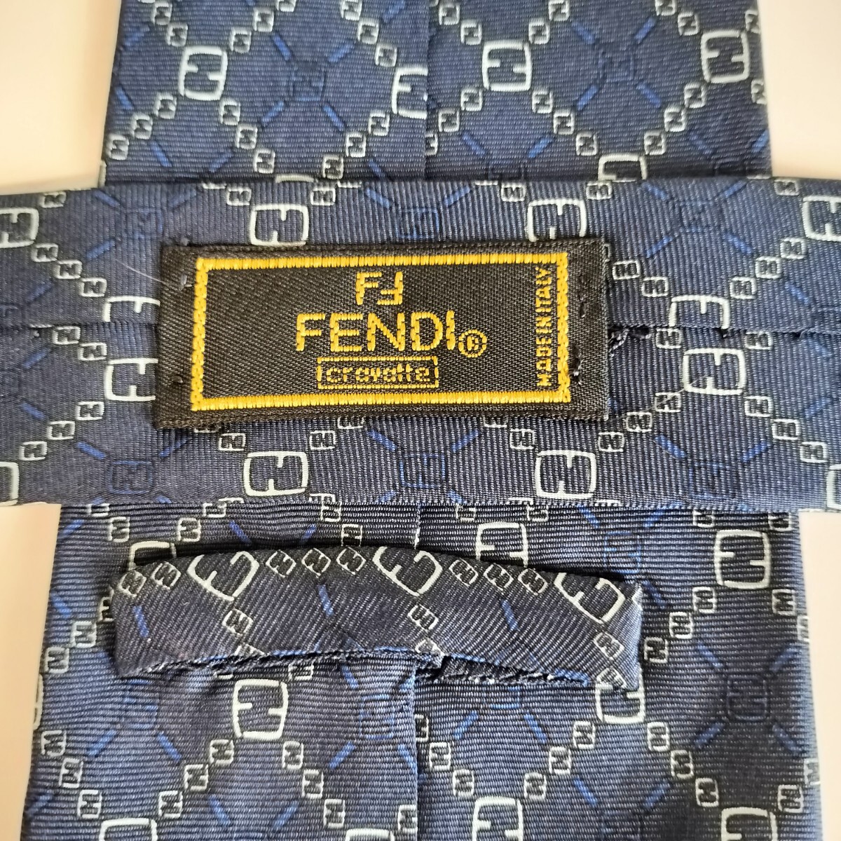 - FENDI(フェンディ)紺チェーンチェックズッカ柄ネクタイ
