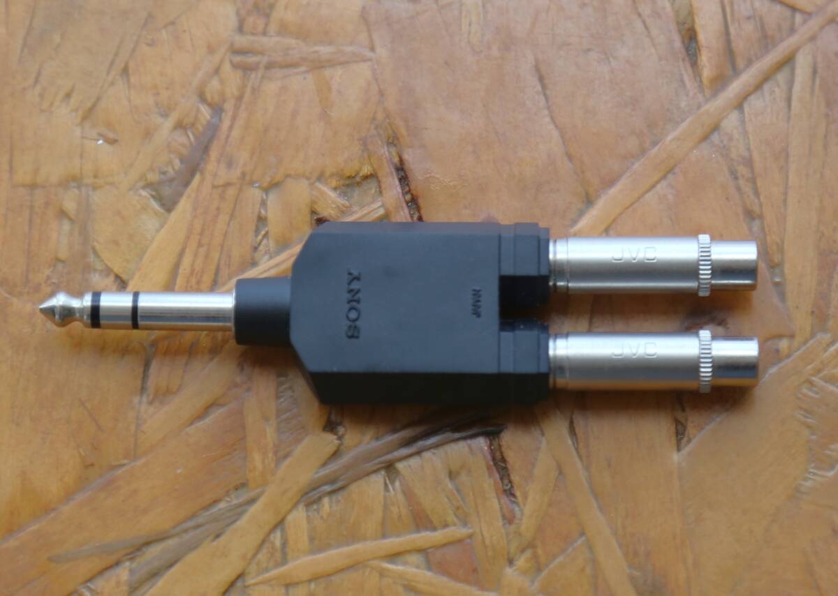 - 『Sony・ステレオ標準プラグ(オス)→モノラル標準プラグ(メス)×2』+『JVC・モノラル標準プラグ(オス)→RCAプラグ(メス)』×2
