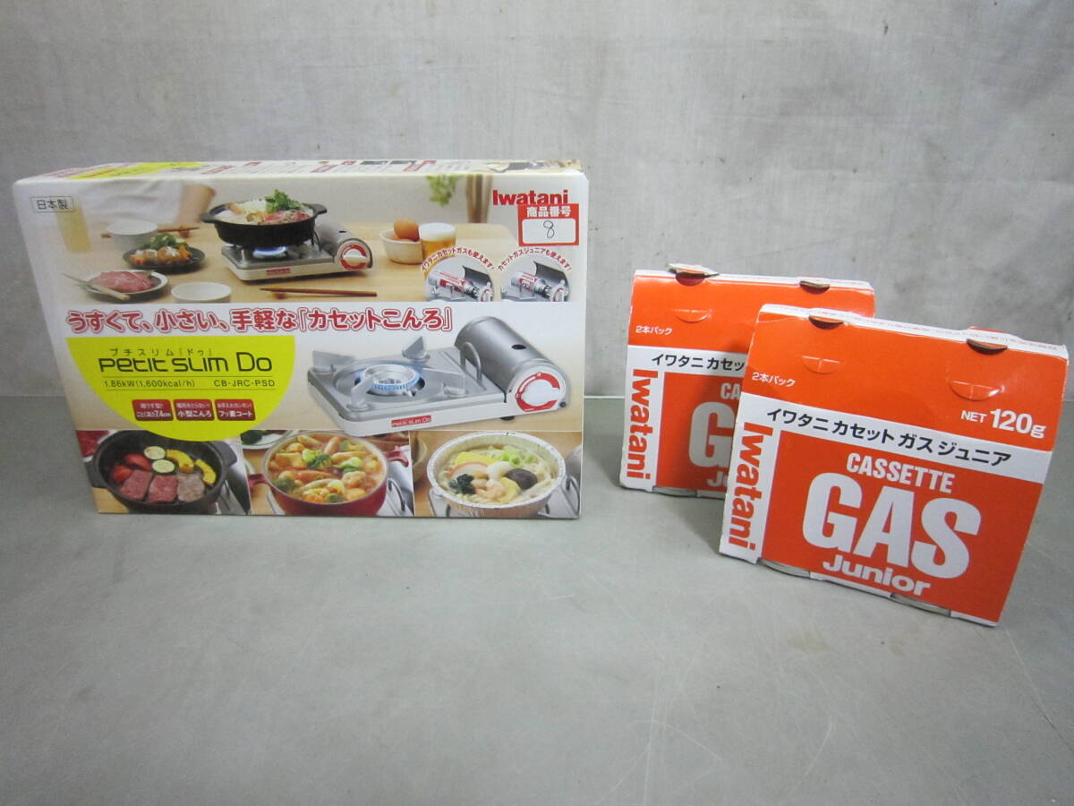 - 【未使用】L789 岩谷/イワタニ IWATANI カセットコンロ プチスリム ドゥ 新品カセットガスジュニア4本つき CB-JRC-PSD ボンベ