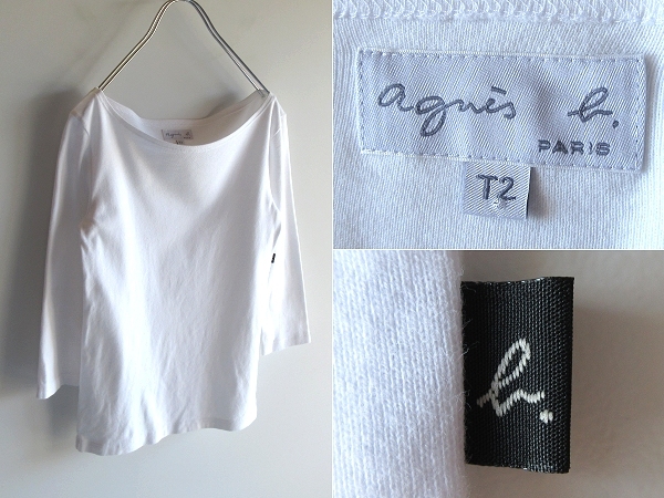 - ネコポス対応 agnes b. アニエスベー ロゴピスネーム コットンフライス カットソー 七分袖 Tシャツ T2 白 ホワイト 日本製