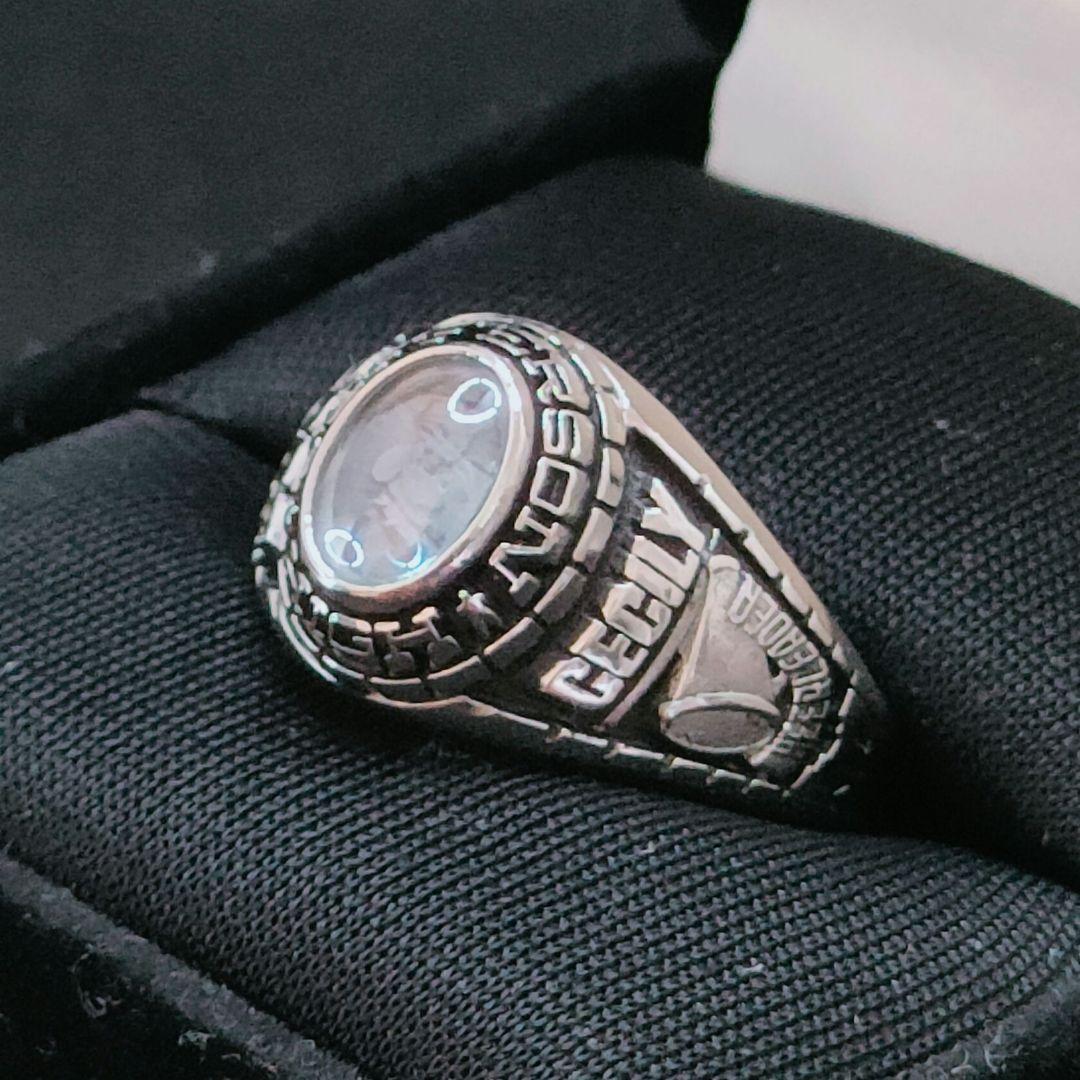 > 2008年スターリングシルバー925 ヴィンテージ カレッジリング CECILY 指輪 リング アクセサリー LTM 14号 アンティーク 良品 メンズ 男性