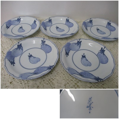 - ☆お皿 5枚 ナスの絵柄 径16.5cm ※少々キズあり tm2408-30-3☆