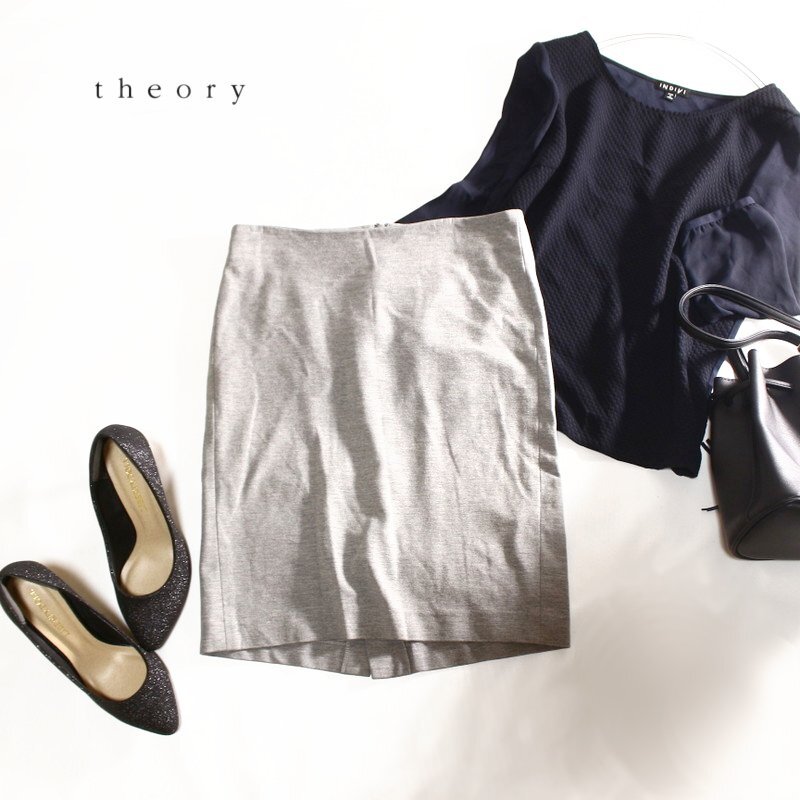 - 美品 セオリー Theory シンプル ストレッチ ジャージ― コットン タイトスカート 0 グレー 綺麗め 日本製