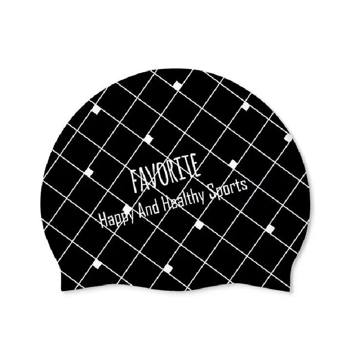 - 【プールに映える!】スイムキャップ《ブラックチェック》swimming cap 柔らかシリコン素材 黒