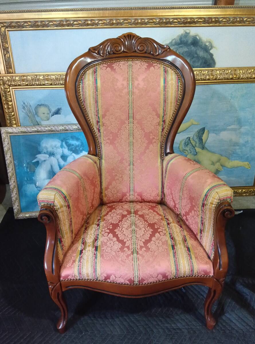 > 24090107④ アンティーク風チェア ロココ様式風 木製フレーム 花柄 猫脚風 刺繍 肘かけ付き コレクション インテリア