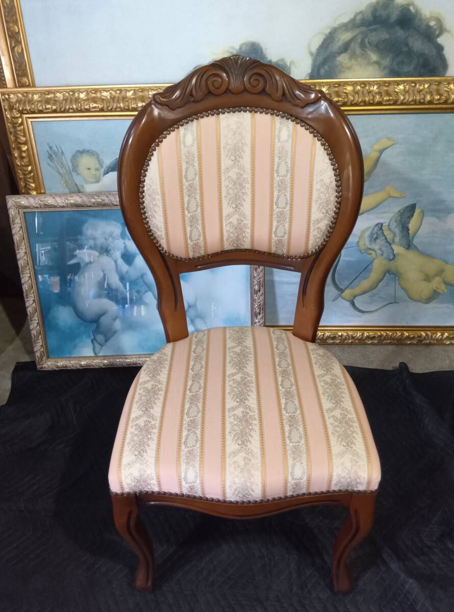 > 240901012⑨ アンティーク風チェア ロココ様式風 木製フレーム 花柄 猫脚風 刺繍 肘かけ付き ストライプ インテリア家具