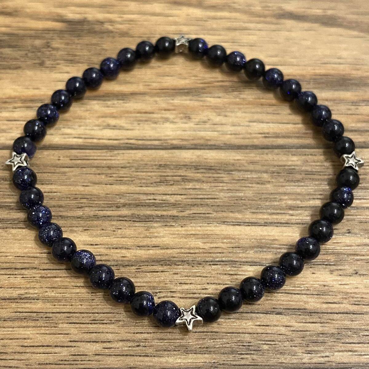 - 紫金石 ブルーゴールドストーン スター ビーズ ブレスレット