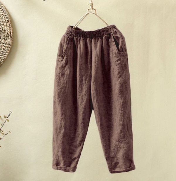 - 秋新品*人気 パンツ ボトムス ゆったり 無地 お仕事パンツ 綿麻 通勤 ワイドパンツ 30代 40代 ウエストゴム リネンパンツ*コーヒー