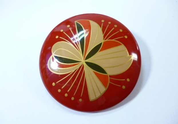 - ф 漆塗り 金蒔絵 ブローチ ф 秀月 蒔絵 漆塗