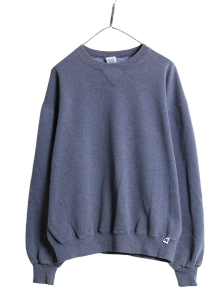 > 90s ラッセル 無地 スウェット メンズ レディース L 古着 90年代 オールド RUSSELL トレーナー 前V 裏起毛 スエット クルーネック ソリッド