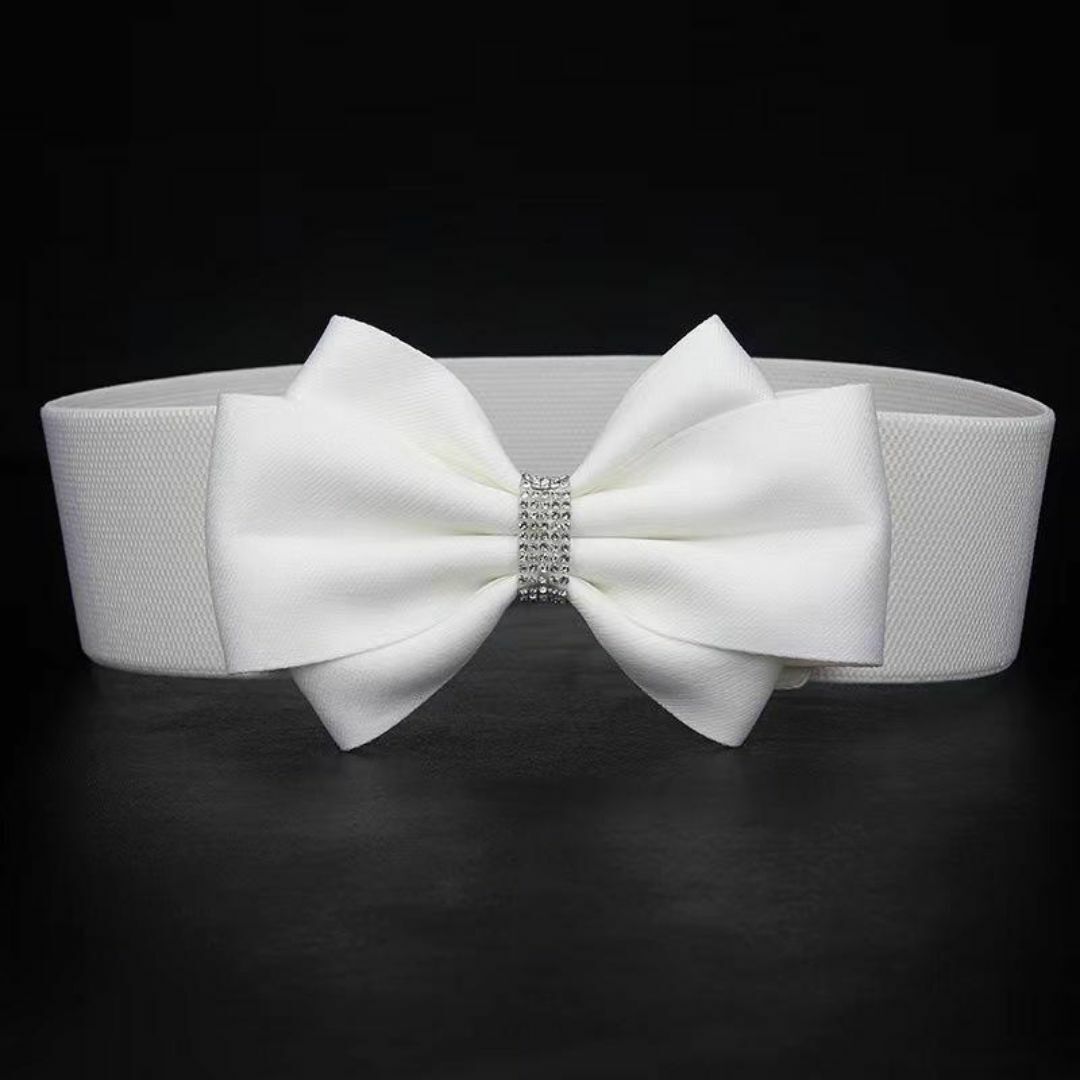 - 70cm~100cm ホワイト 大きめリボン がかわいい 幅広ゴムベルト