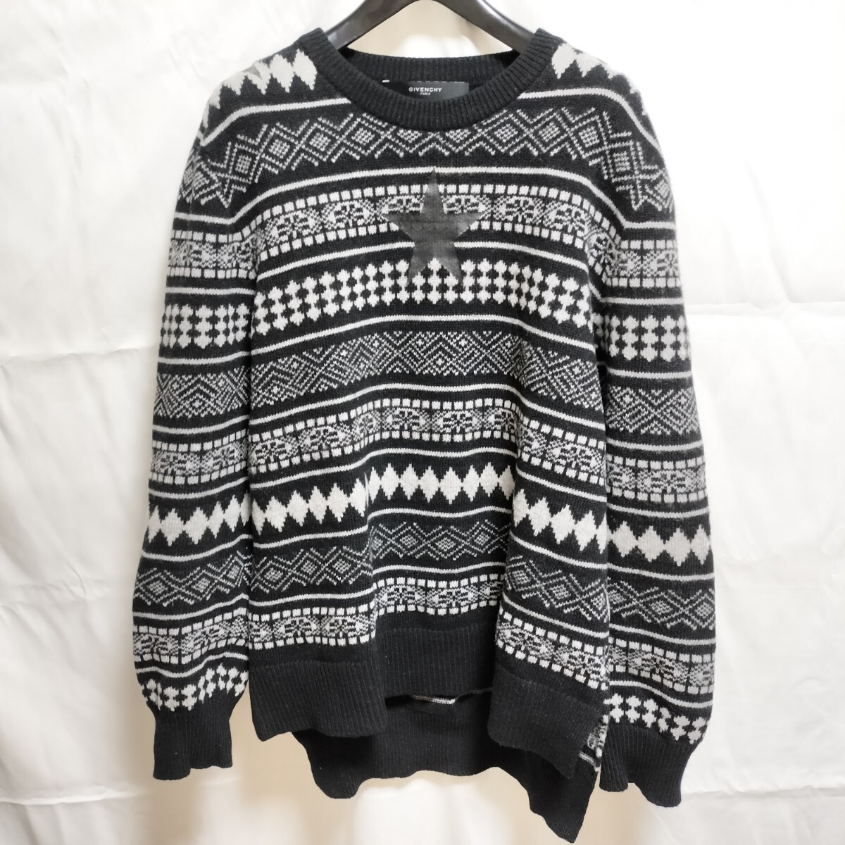 - GIVENCHY ジバンシー 長袖セーター ウール 黒×グレー 柄×星プリント