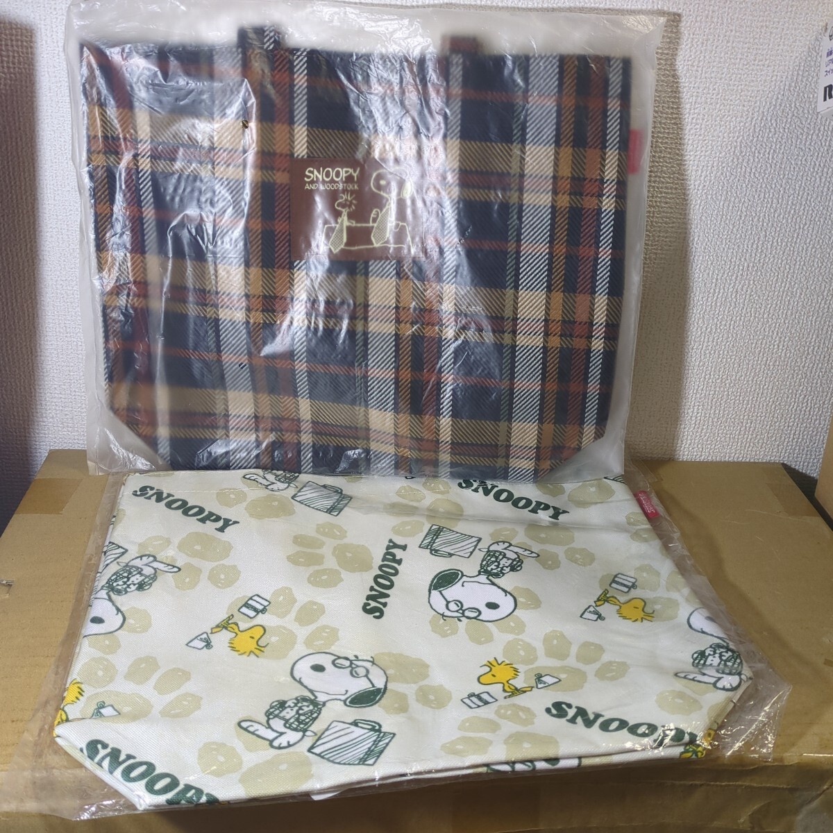 - スヌーピー 特大トートバッグ 2点セット 本格ツイード柄 トラベル柄 非売品 未開封品 未チェック 詳細不明 ジャンク扱い カバン