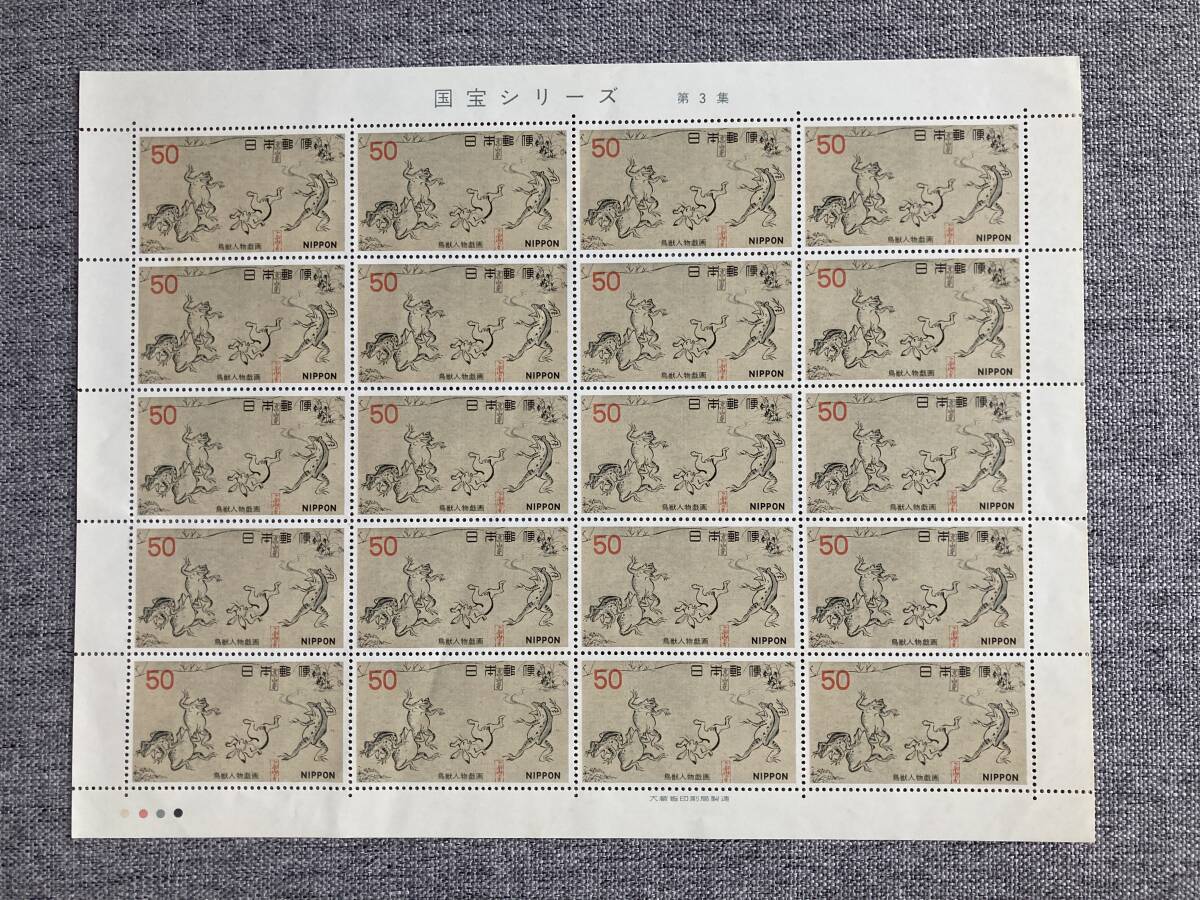 > ★未使用 第2次 国宝シリーズ 第3集 鳥獣人物戯画 高山寺 京都 1977年 昭和52年 切手シート 50円 20枚 日本郵便