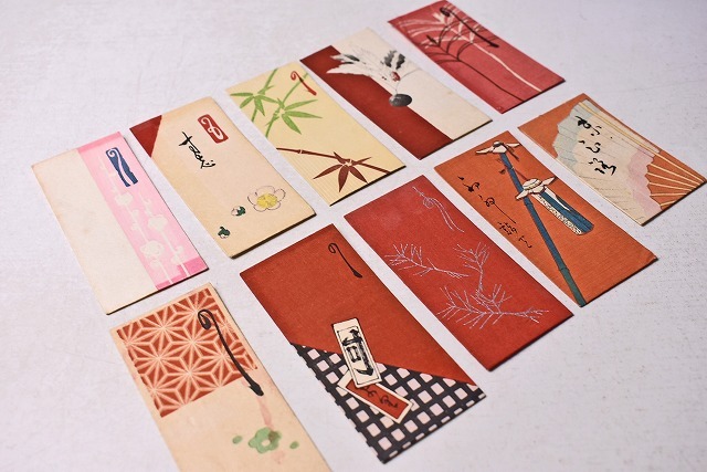 - ポチ袋 ★ 和紙 ★ レトロ ★ 民芸品 ★ 和模様 ★ 和柄 ★ アンティーク ★ 御祝袋 ★ お年玉袋 ★ 和雑貨 ★ 10枚セット ★ 中古品 ★ b