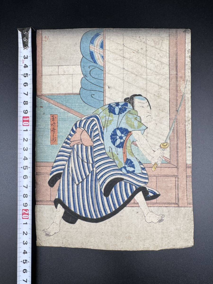 - 江戸期/真作 上方絵 本物浮世絵木版画 歌舞伎 役者絵 芝居絵 錦絵 中判