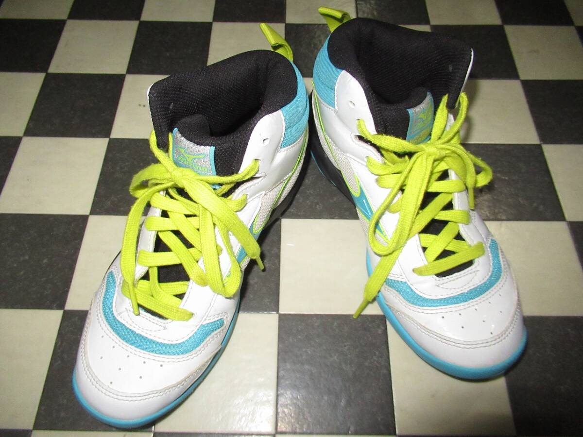 - ★ミズノ★ウエーブルーキーBB4 23cm ジュニアバスケットボールシューズ ホワイト×ライトブルー×イエロー