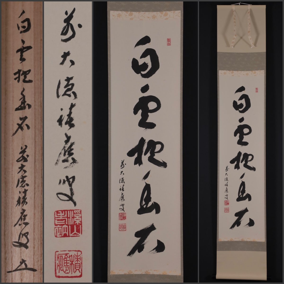 - 【模写】吉】11204 福本積応 書「白雲抱幽石」 共箱 臨済宗 大徳寺派 招春寺住職 仏教 茶掛け 茶道具 禅語 書 掛軸 掛け軸 骨董品