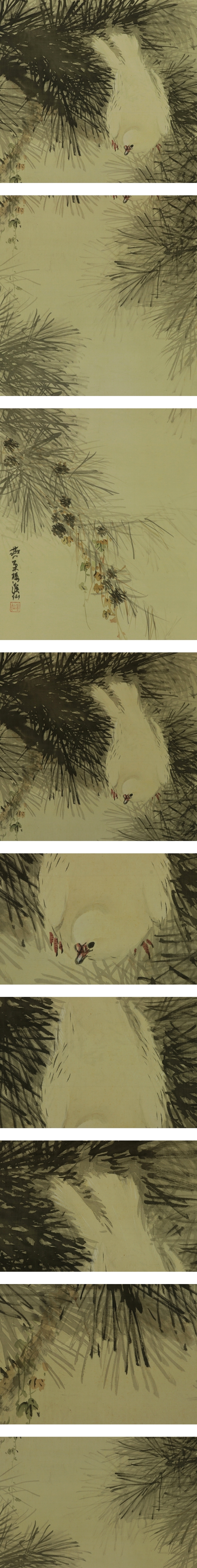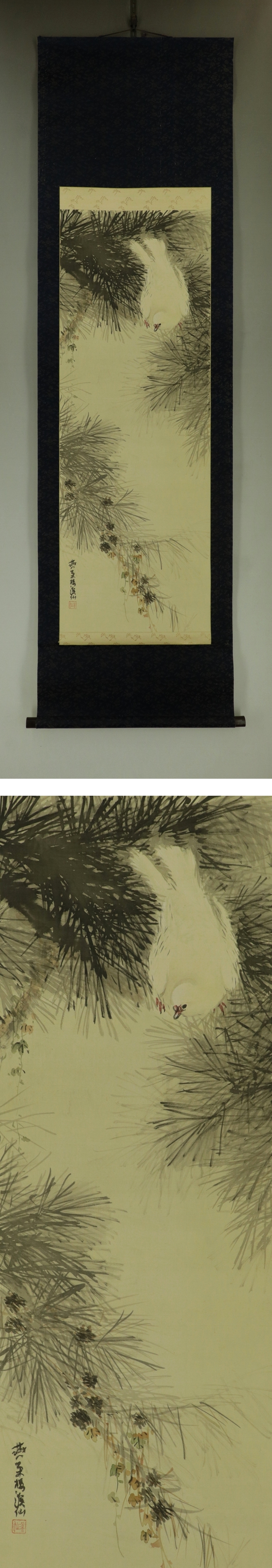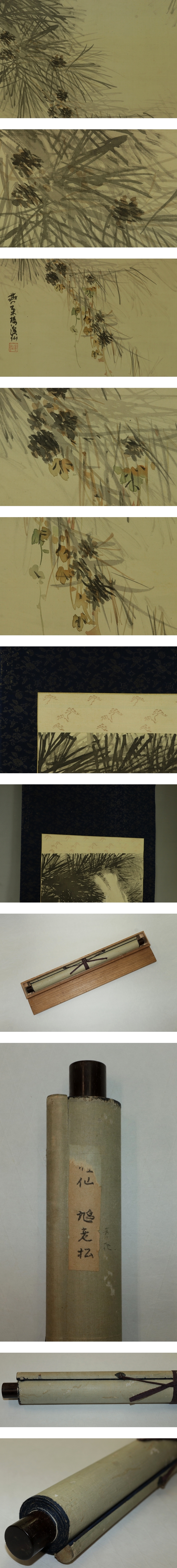 - 【模写】富田渓仙【松に鳩図】◆絹本◆合箱◆掛軸 s07038