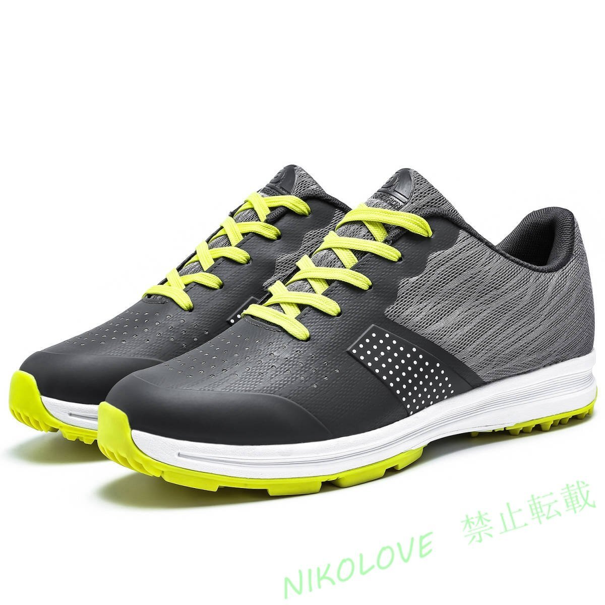 - 新品 ゴルフシューズ メンズ スニーカー 強いグリップ スパイク靴 ソフトス アウトドアフシューズ 防水 防滑 耐磨 灰 緑 LF711