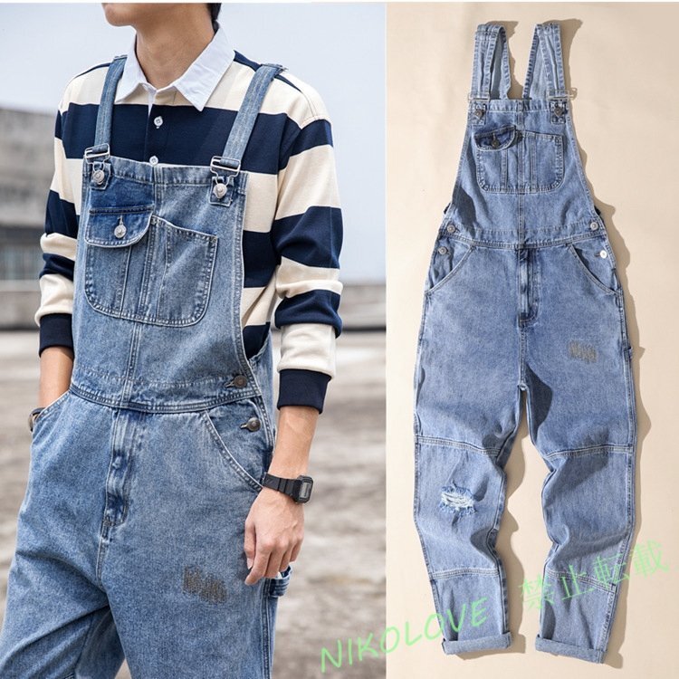 - 新品 アメカジ オーバーオール サロペットパンツ デニム ワイドパンツ ワークウェア ブルー 男前 4XL LF654