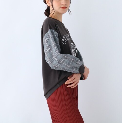 > 新品 SHOO・LA・RUE/Cutie Blonde お袖チェック切替ロゴプルオーバー チャコールグレー(014) 03(L) 定価2198円