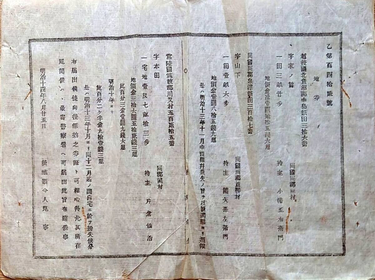 - f24090651〇明治布告布達 補欠戸長の任期 茨城県 明治14年〇和本古書古文書