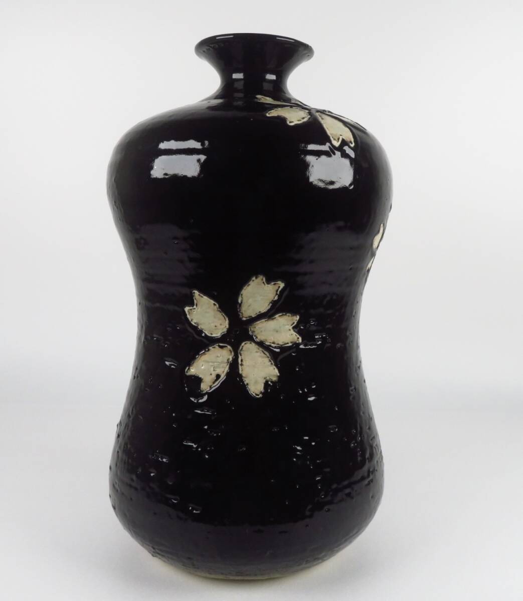 - 本物保証 北大路魯山人 黒地白花文瓢花瓶 (八十二歳 黒田陶々菴識箱付)作家 在銘 共箱 本物返品OK 240906−2