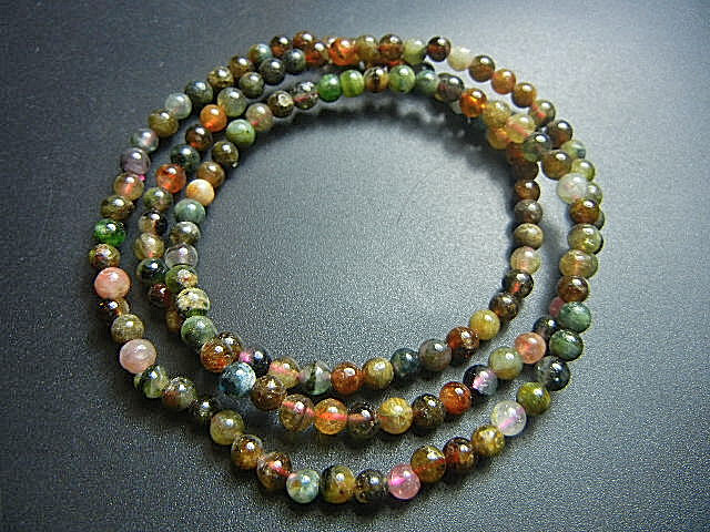 - 高級天然貴石JFV3154 多彩トルマリン 超極上級美品 4mm多重巻き 数粒カケ有