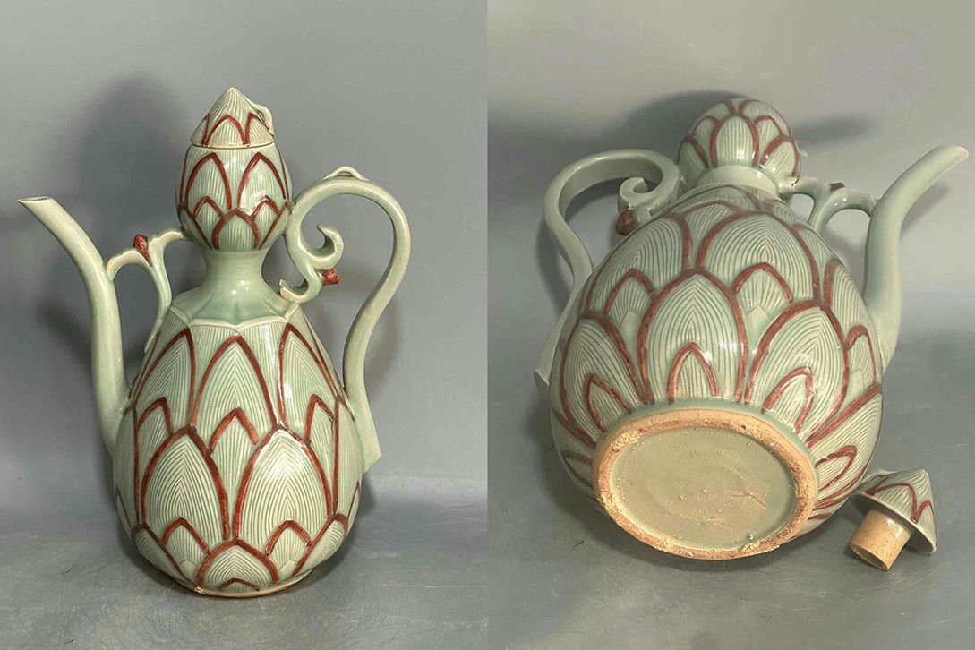 - ▼渡鶴羽▼P830朝鮮珍品旧蔵 朝鮮美術 高麗磁 朝鮮古陶磁器 古高麗 李朝 高麗青磁執壺
