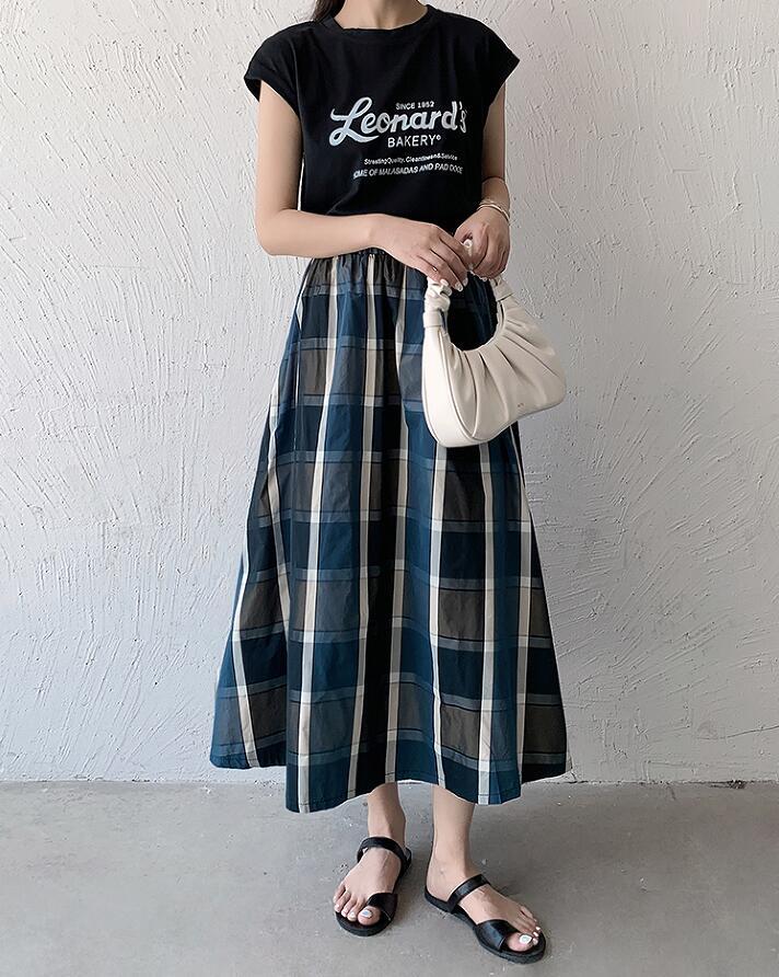 > 緑 / 秋新品 ロング丈 チェック柄 フレアスカート 着やせ レディース Aラインスカート マキシ丈 ボトムス 大人 通勤 通学/12色選ぶ