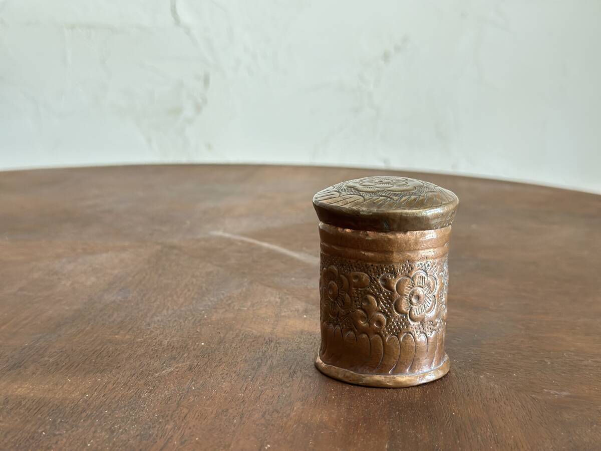 - インド アンティーク 真鍮 蓋付き 小物入れ 器 銅 古銅 オブジェ インテリア アート 置物 トライバル 古道具