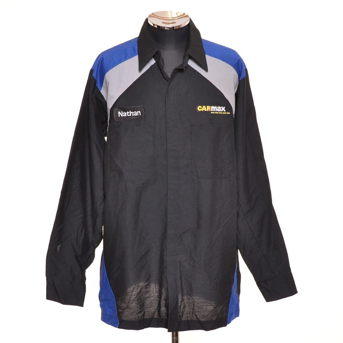 > 〇499040 UNI WEAVE ○ワークシャツ 長袖 CARmax 企業ロゴ サイズ16.5-02 メンズ ブラック ブルー