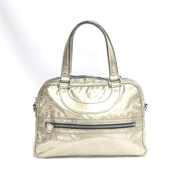 - JACQUES LE CORRE ジャック・ル・コー メタリック レザー ハンドバッグ シャンパンゴールド【送料無料】中古品 used AB
