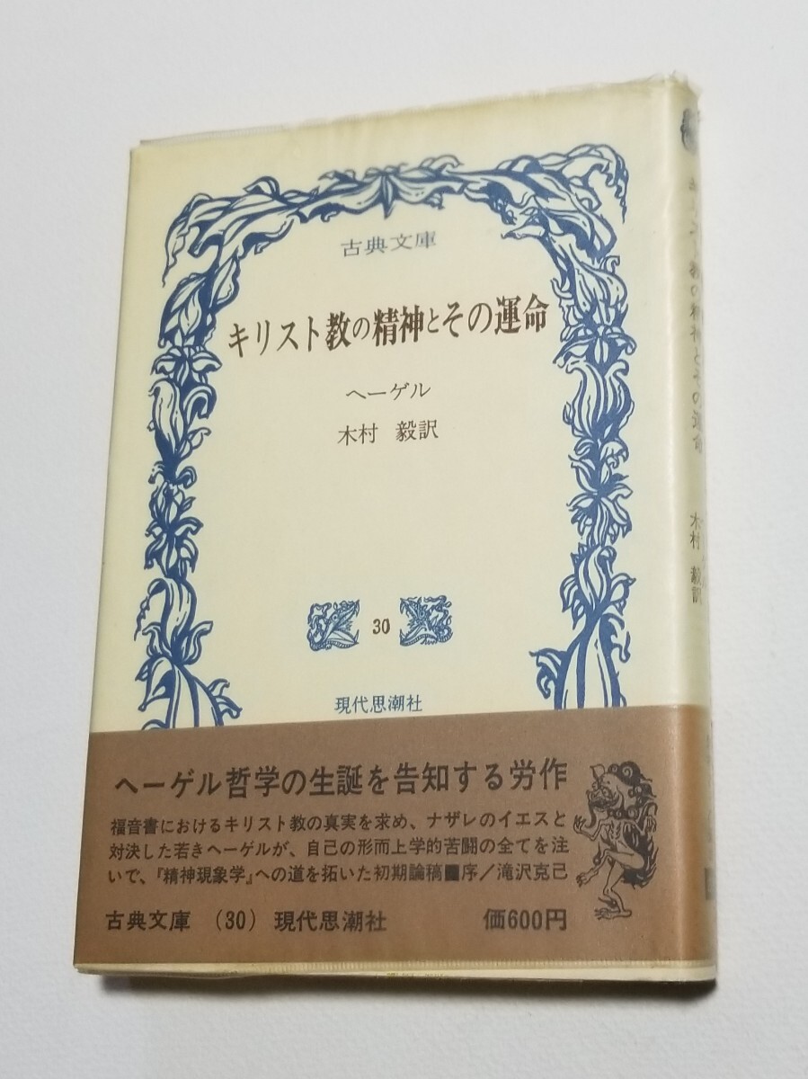 - キリスト教の精神とその運命 古典文庫 ヘーゲル 木村毅 現代思潮社 1970年 第3刷