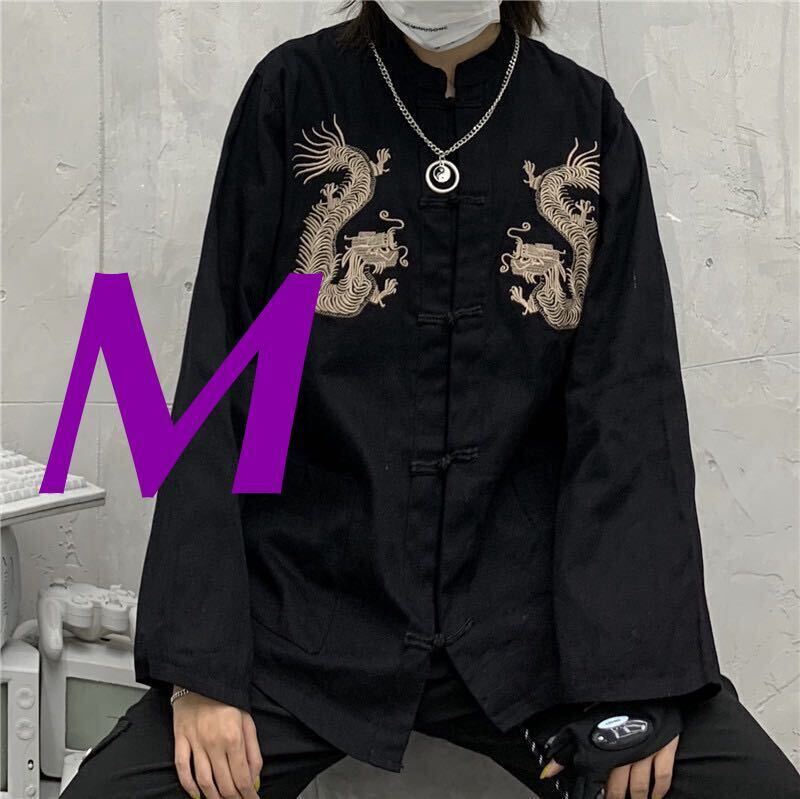 > シャツ ビッグシルエット 長袖 アウター チャイナシャツ トップス トレンド 衣装 コスプレ 好評 ユニセックス ストリート黒 ブラック M