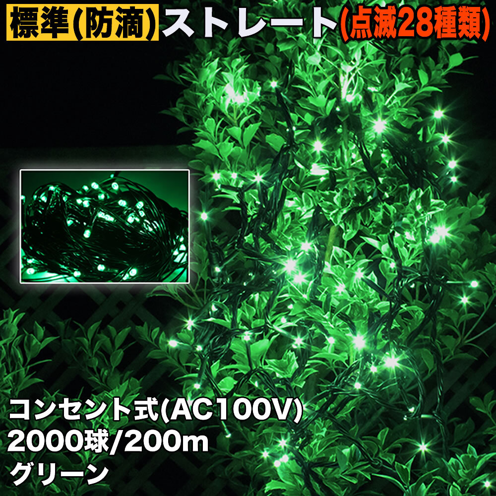 > クリスマス 防滴 イルミネーション ストレート ライト 電飾 LED 2000球 200m グリーン 緑 28種点滅 Bコントローラセット