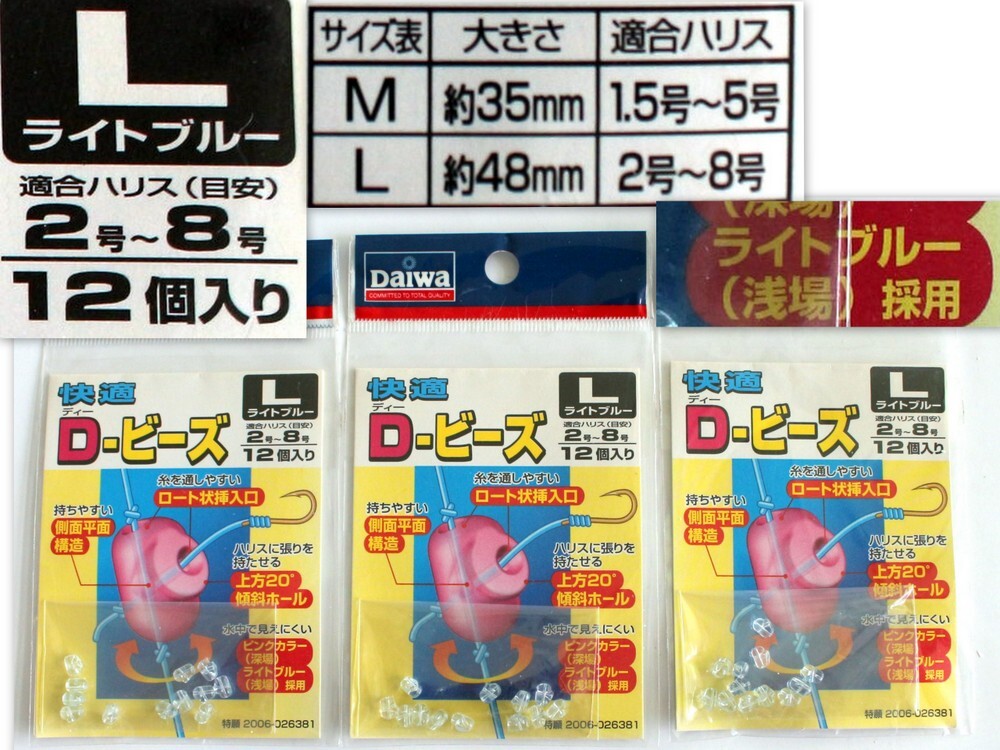 > 948/未使用/daiwaダイワ 快適Dビーズ Lサイズ ライトブルー(浅場)12個入3セット 合計36個 ※出品者の他の商品とまとめて購入するで同梱