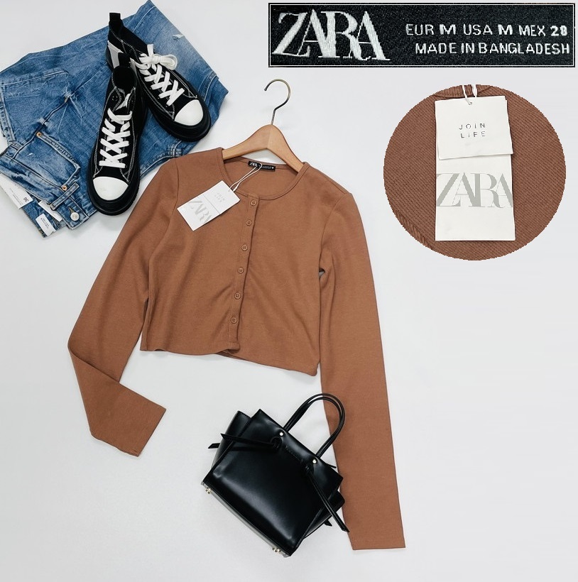 - /M/ ZARA ブラウン 長袖カーディガン レディース タグ カジュアル トップス羽織り 大人可愛いニット デイリー コットン 生地 ザラ