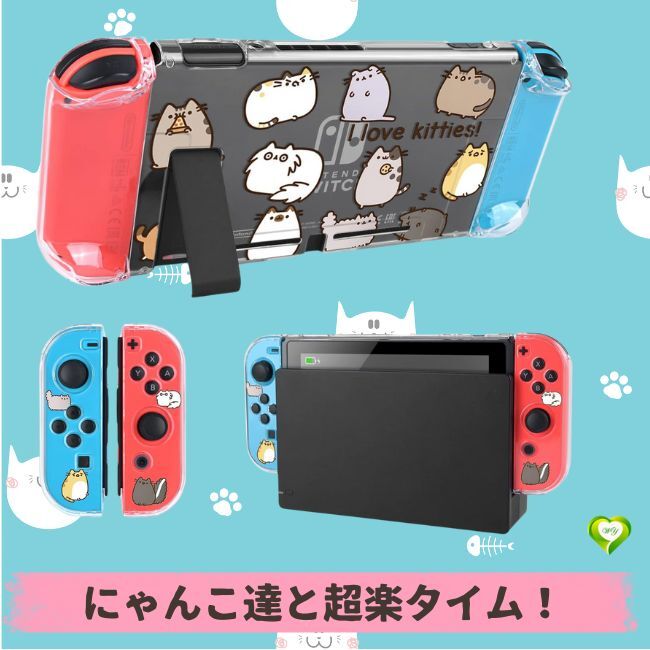 - 【にゃんこ達と超楽タイム!】Switch 用 ケース ニンテンドースイッチ カバー 透明 クリアーカバー 耐衝撃 傷つけ防止 着脱簡単 全面保護