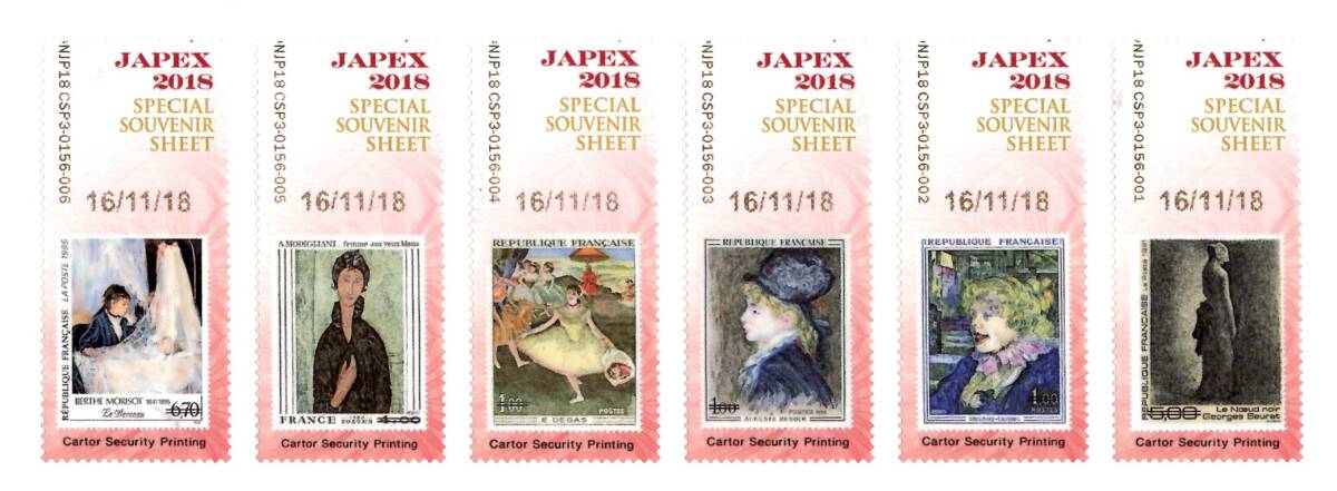 - JAPEX2018 特別記念シート フランス美術切手図案 シール状 6枚セット