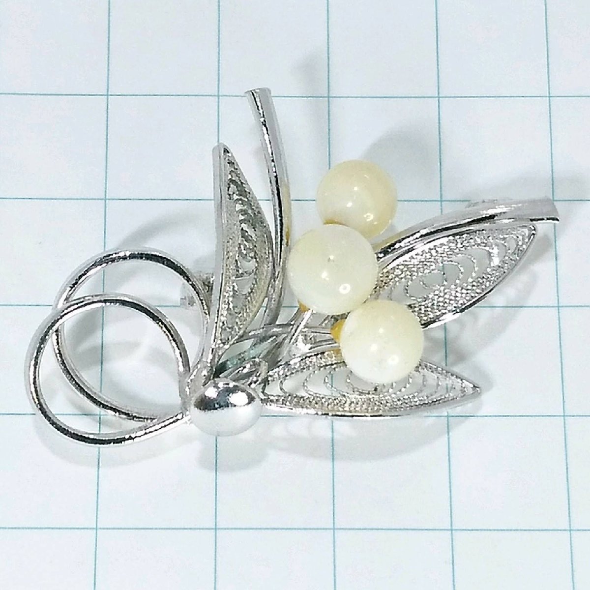 - 送料無料)ビンテージ☆白 お花モチーフ☆アンティーク ブローチ A26127