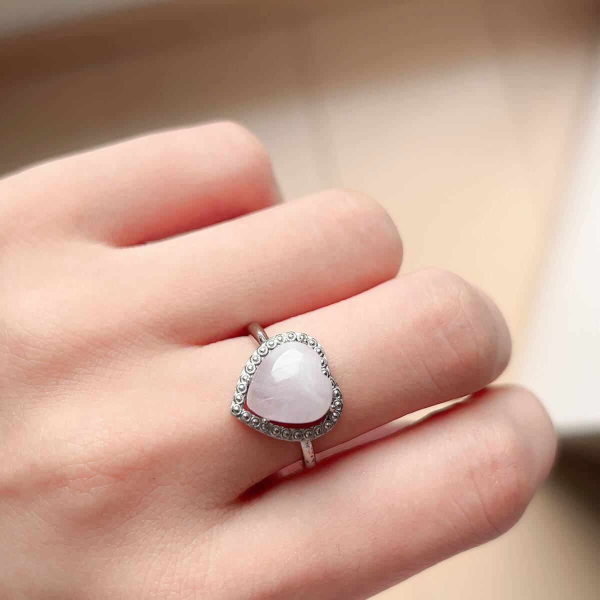 > 訳あり◇クンツァイト(リシア輝石)◇指輪◇ハート形◇リング◇フリーサイズ◇天然石◇パワーストーン◇巾着袋つき◇プレゼントにも