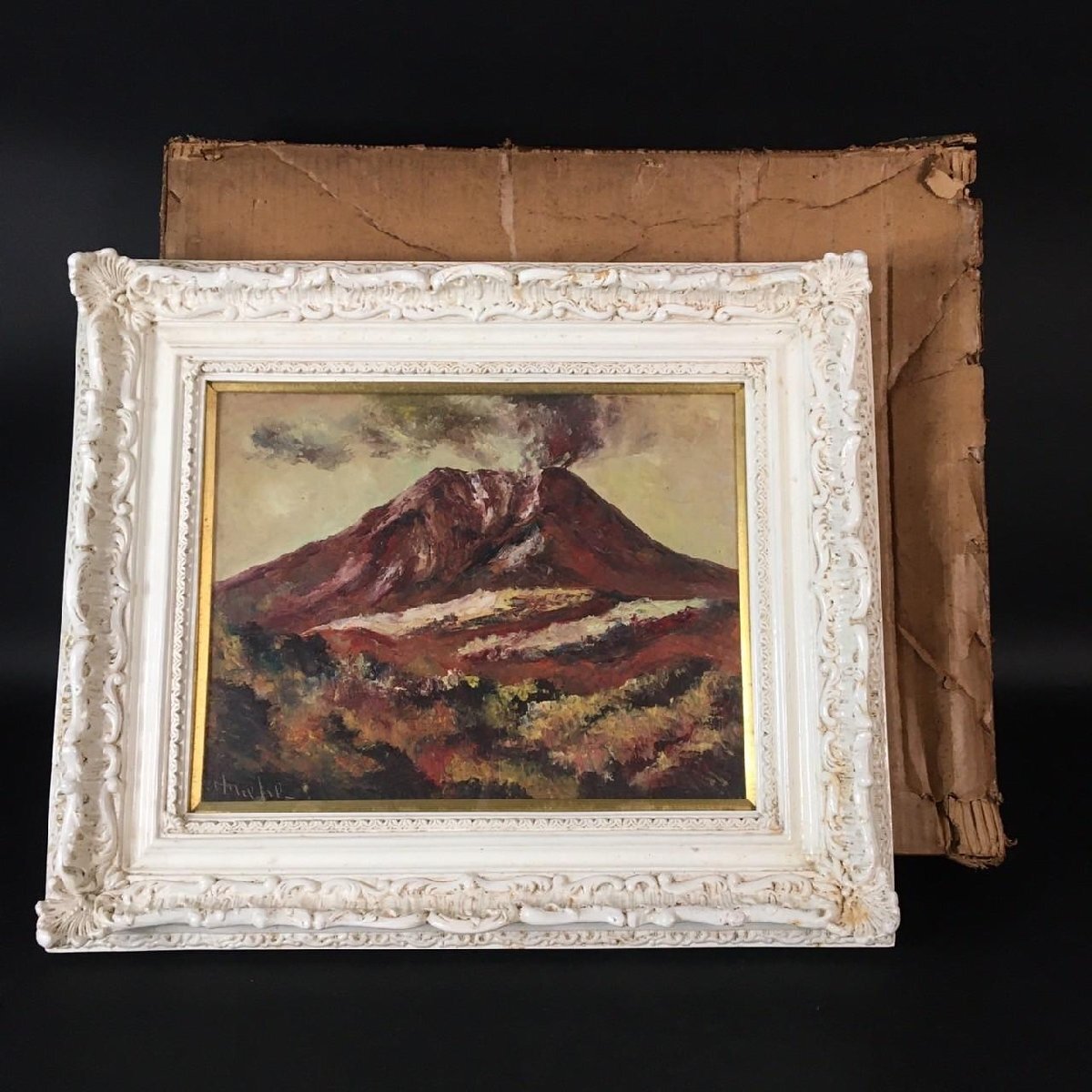 > ER0912-24-3 「浅間噴煙」 N・ueno 上野 東京造形芸術社 風景画 額付 額装 絵画 油彩 油絵 美術 アート作品 絵H30cm W40cm 160サイズ