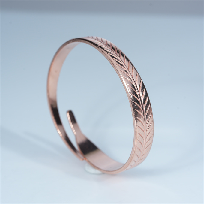 - 葉の形 純銅製ジュエリー バングル 銅ブレスレット エネルギー リング 痩身 調節可能 健康 TQ063