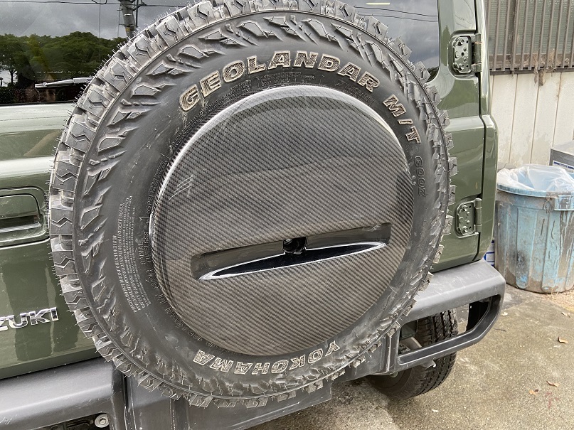 - 綾織カーボン JB64 ジムニー 背面タイヤ カバー カーボン 迷彩 クリア塗装済み 16インチ フリスビー 取付簡単
