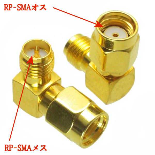 - RP-SMAオス~RP-SMAメス, L字型の変換コネクタ, 同軸アダプタ RPSMAP-RPSMAJ