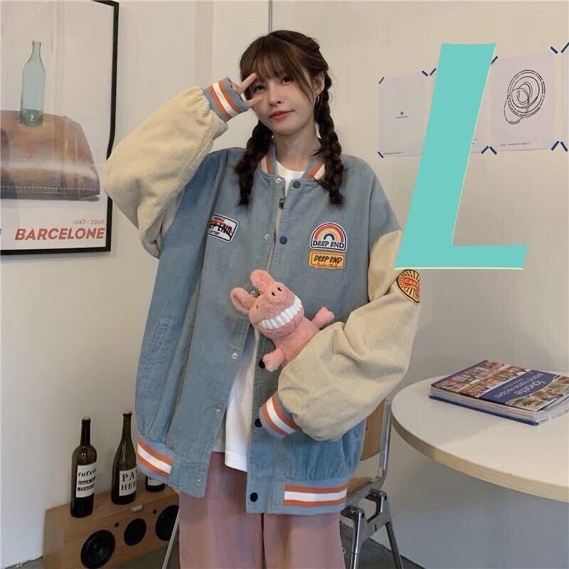 > ブルゾン ジャケット アウター コーデュロイ スタジャン トレンド ストリート ビッグシルエット レディース ブルー 青 L